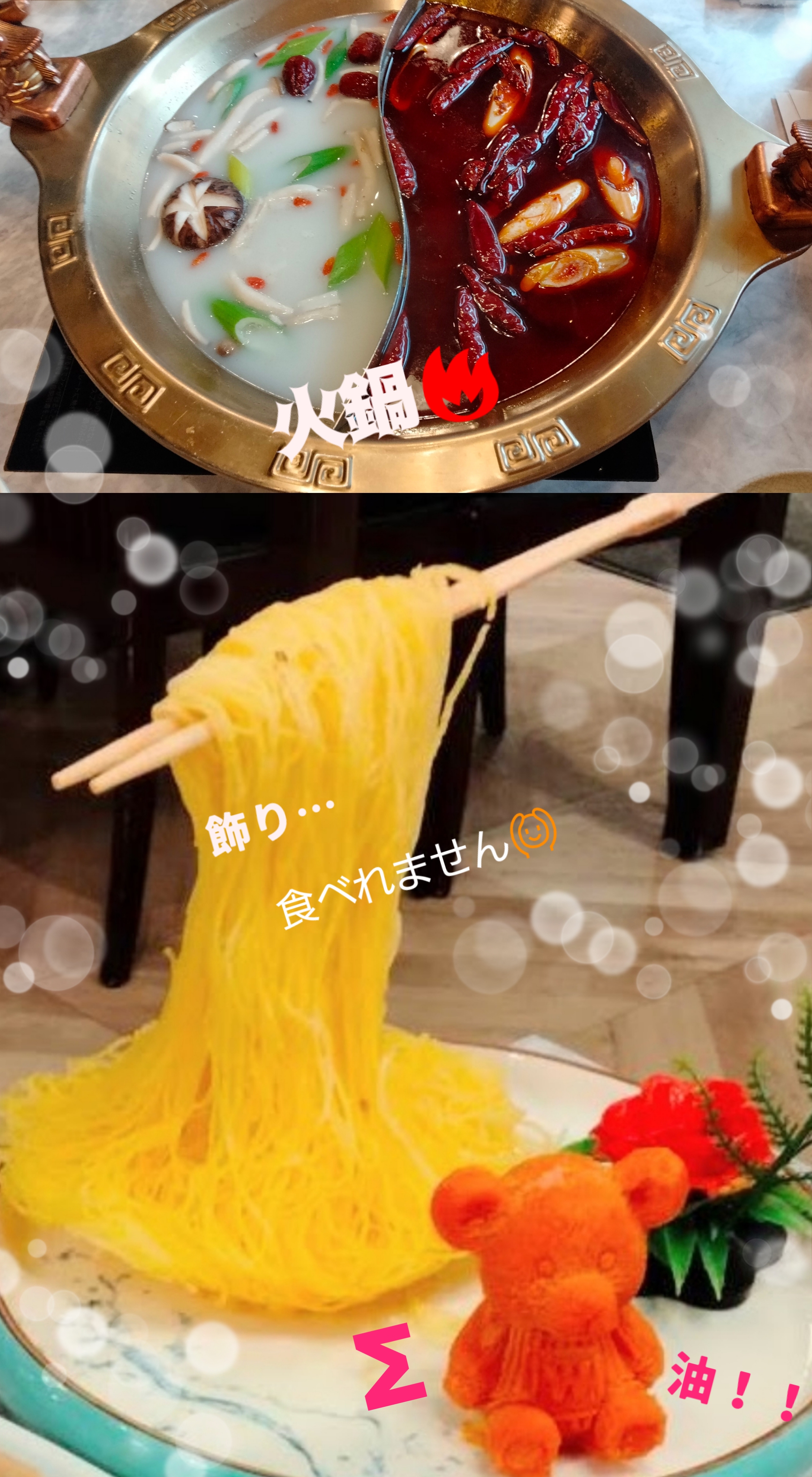 火鍋(上)熊ちゃんの油(下)です😃